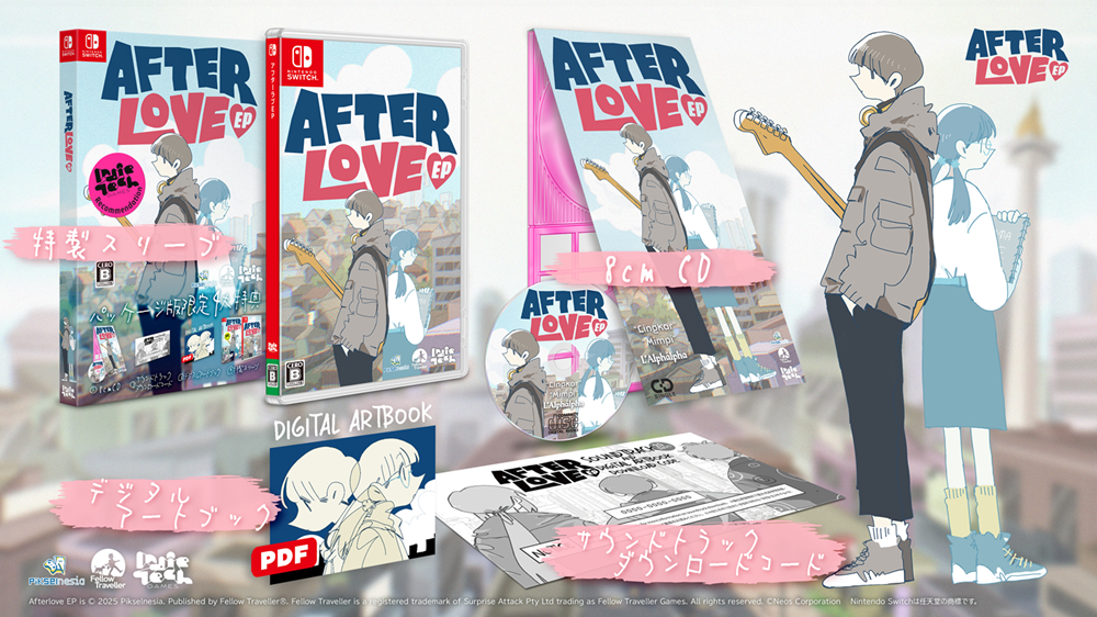 ネオスは、インディーゲームレーベル「IndieTech Games(インディーテックゲームズ)」の第4弾タイトルとして、Fellow Traveller (オーストラリア)との契約の下、【Afterlove EP】(以下「本作」)のNintendo Switch及びPlayStation 5のパッケージ版を、アジア地域(日本、韓国、台湾、香港、東南アジア) で発売する運びとなりました。本日より全国の販売店にて順次予約受付を開始しております。